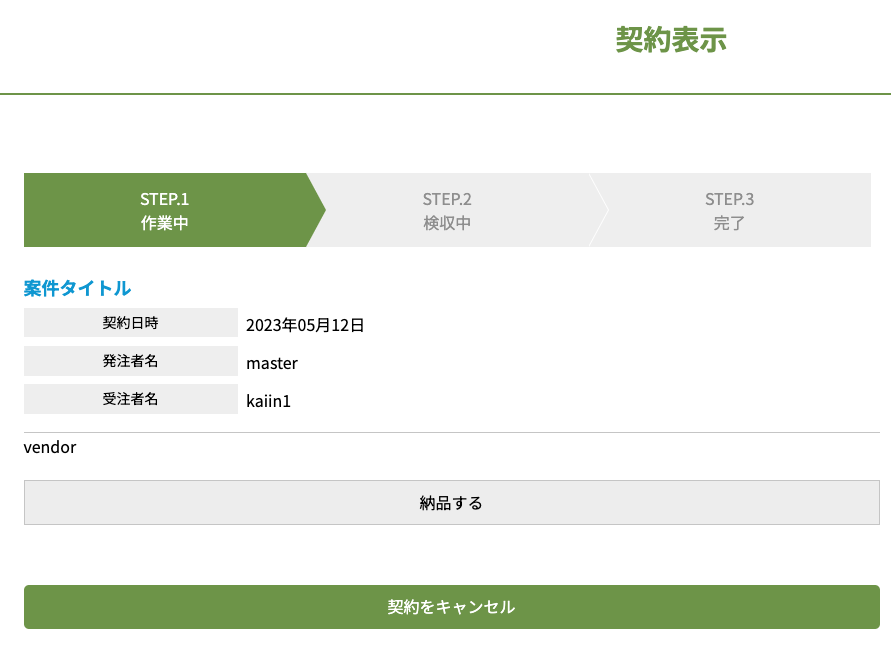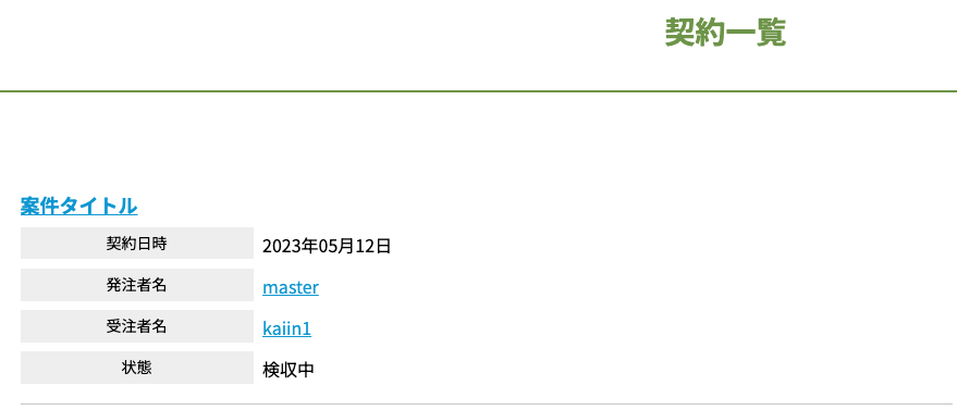 契約が完了(発注・受注)した案件は、契約一覧ページに表示されます。